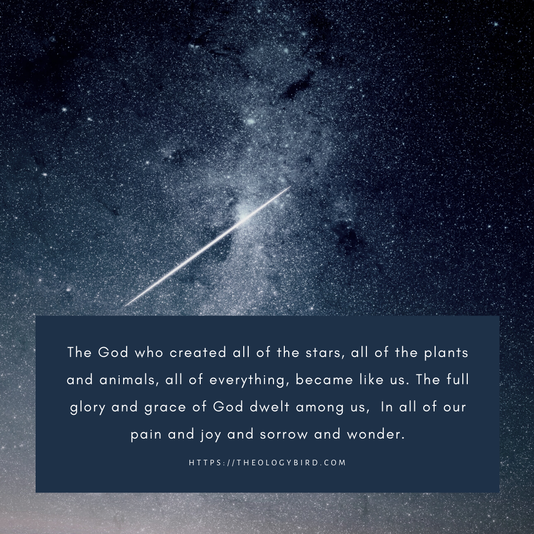 I love this passage from John. I think it’s one of the first passages I memorized (even if only roughly). For years I dreaded preaching it at Christmas, but I’ve come to love hearing it’s majesty next to the imagery of a baby in a manger. For this is God.